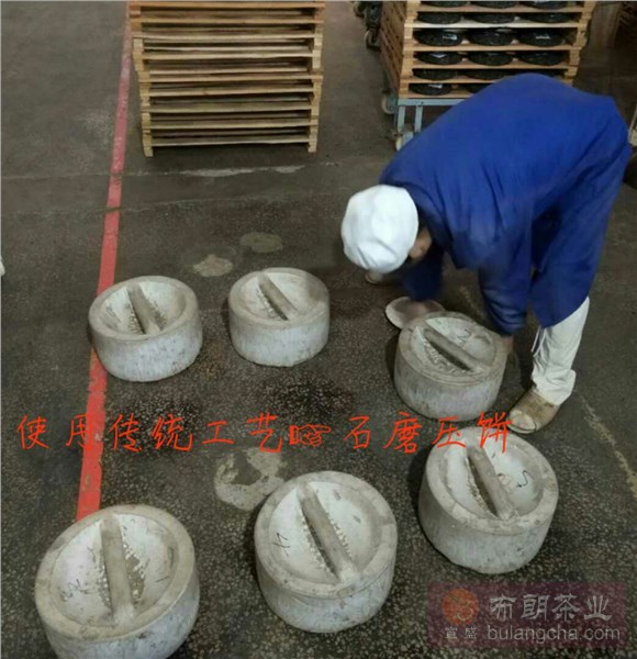 圖四是用石磨來對(duì)茶葉進(jìn)行壓餅,用傳統(tǒng)的手法石磨壓餅使茶葉松而不散。傳統(tǒng)的手工壓餅,是一項(xiàng)不錯(cuò)的技藝,也有諸多優(yōu)點(diǎn)。