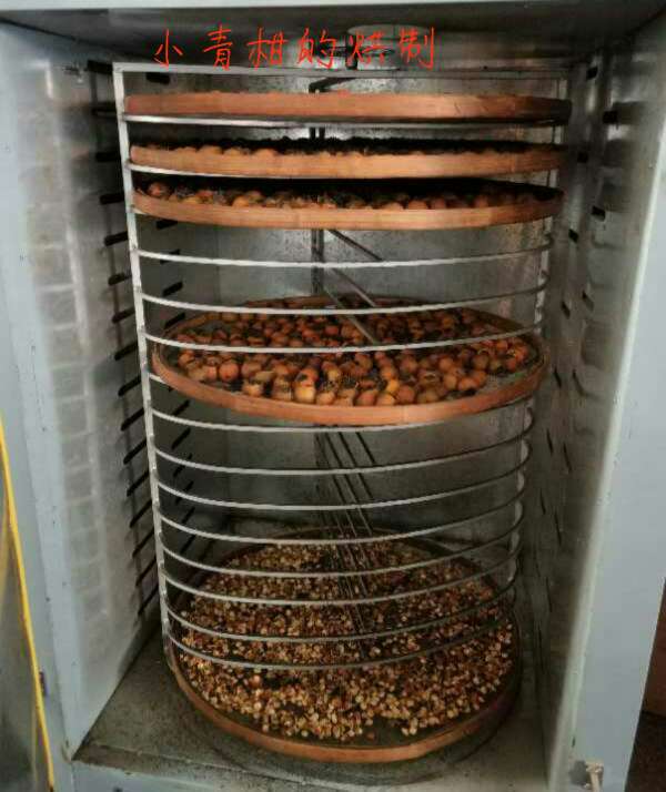 下面的是2018年12月公司用普洱的陳皮與公司的茶葉結(jié)合,制作的小青柑。青柑工藝種類的區(qū)別主要出現(xiàn)在干燥環(huán)節(jié),干燥方式的不同使之形成了不同的風(fēng)味與口感。烘制時(shí)間是18個(gè)小時(shí),低溫烘焙,采用60℃左右的溫度,將小青柑烘焙至干燥。時(shí)間和成本雖有提高,但比起高溫烘焙工藝來說,口感更好,提香適當(dāng),兼以保持了活性,為后期轉(zhuǎn)化保留了空間。