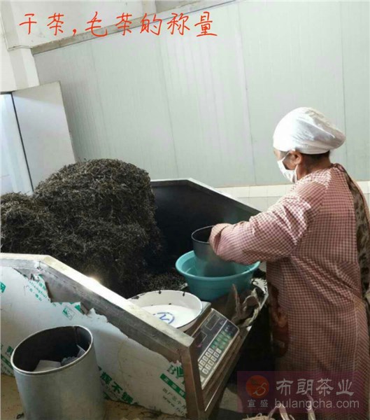 圖一是將曬青毛茶進(jìn)行稱量,這一過程要求工人在稱量散茶的同時(shí)將毛茶裝入布袋中。